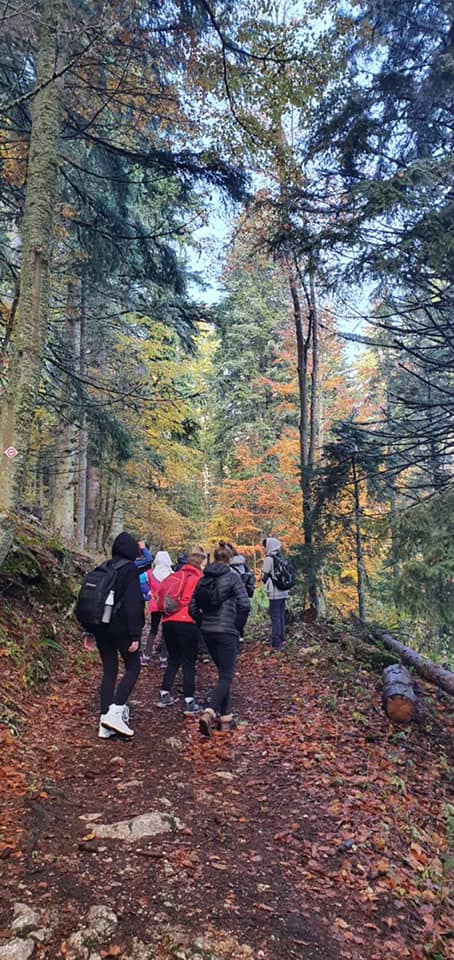 Sekcije | October 26, 2021 Nastavnica Sabina Aljić i 20 učenika planinarske sekcije su išli na pohod na Trebević, vrh Sofe 1629 mnv. Fondacija Mak Dizdar. Posjeta Dujmovskim brdima