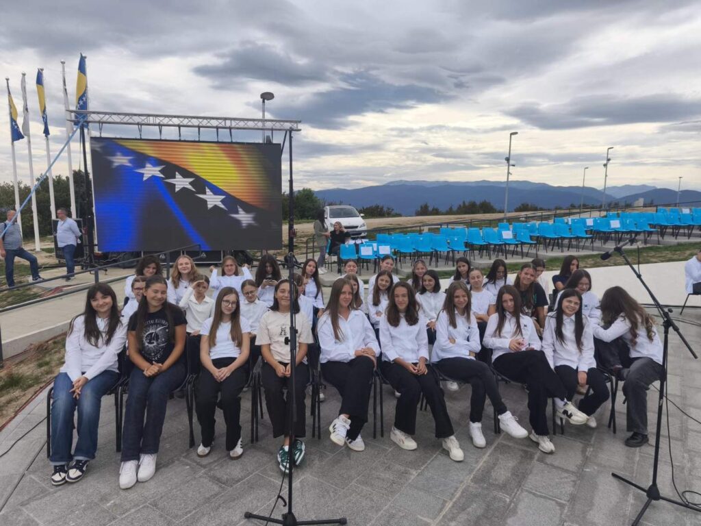 Dana, srijeda, 24.09.2025.godine , učenici naše škole su u pratnji hora škole, zajedno sa nastavnicama Umom Fazlić, Adelom Čorbo, Nerinom Smaković I Sabine Šahović, prisustvovali historijskom času na brdu Žuć, kod spomenika “Krila slobode”.
